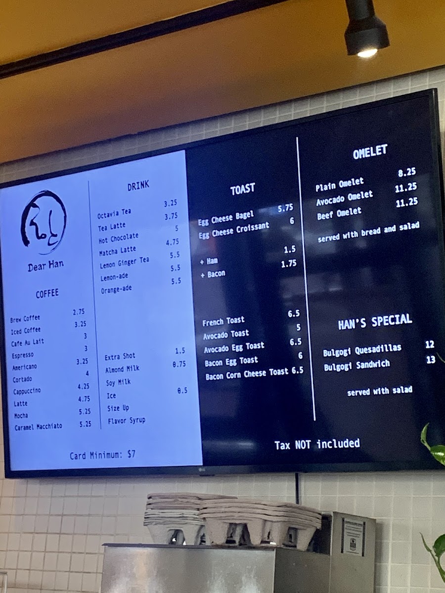 Dear Han, nestled in the heart of Woodside, NY, is a hidden gem that promises a delightful culinary experience. Known for its warm and inviting atmosphere, the café showcases a diverse menu that caters to coffee aficionados and casual drinkers alike. Their all-day offerings include medium roasted organic drip coffee, a selection of iced coffees, and unique beverages such as the purple sweet potato cream latte, which has quickly become a seasonal favorite.